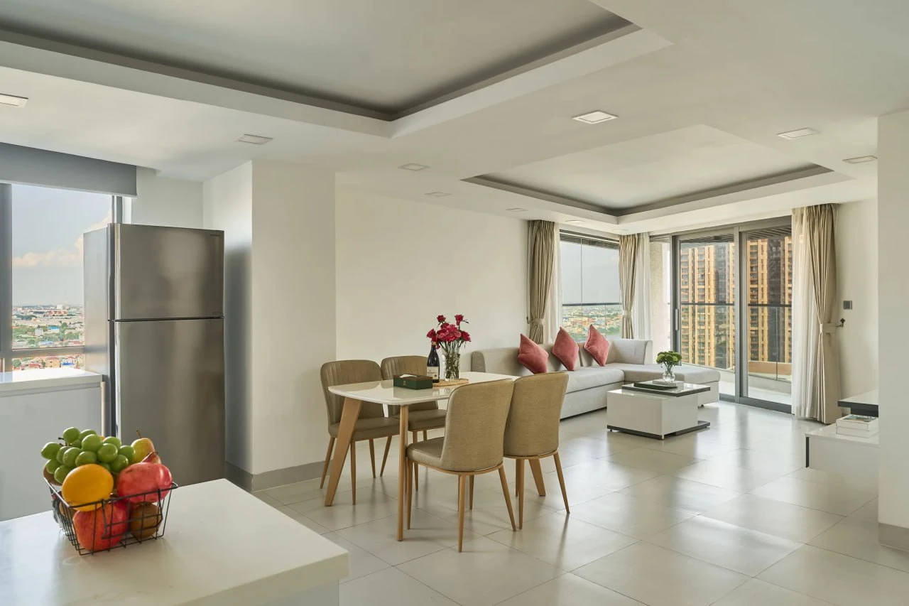Are you in search of a long-term accommodation in Phnom Penh? Look no further! Our luxurious apartments and penthouses are designed to meet your extended stay needs, providing a comfortable and fully-equipped living space for your well-being and a productive environment for your work requirements.